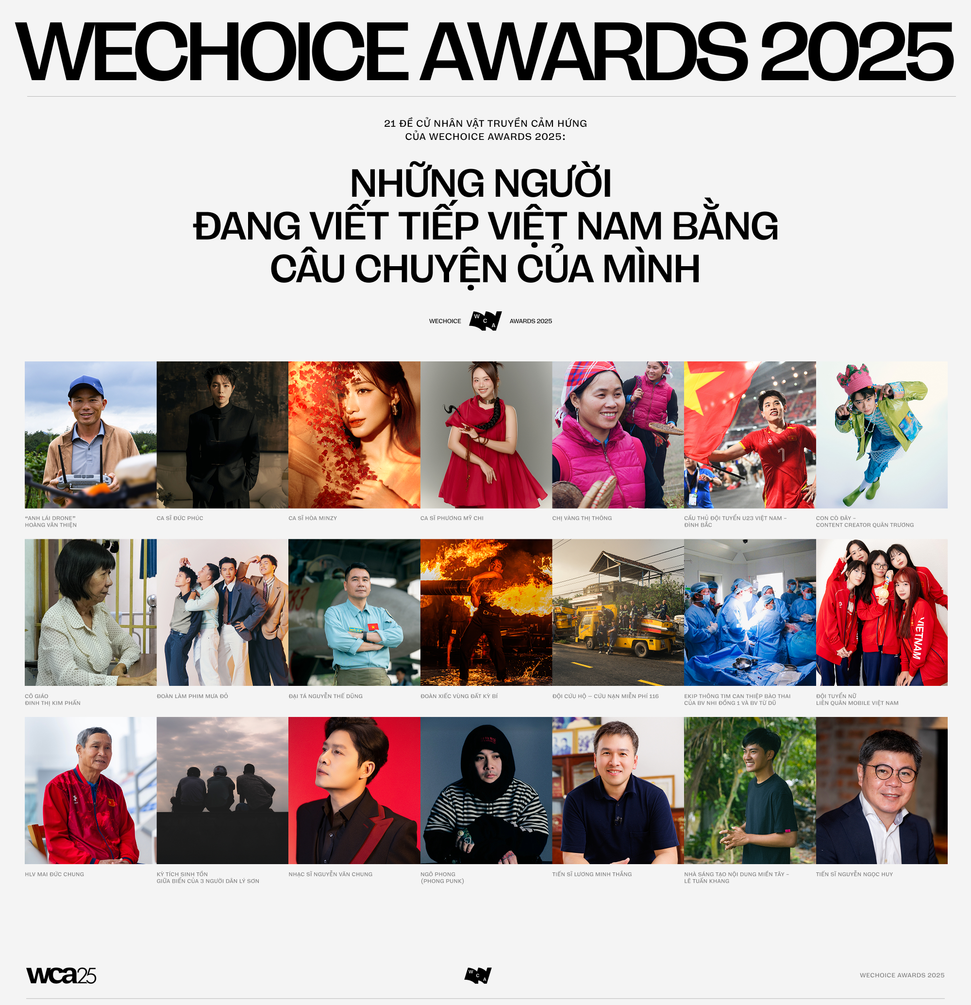 WeChoice Awards 2025 lựa chọn kể lại 21 câu chuyện như những điểm sáng được thắp lên từ nhiều ngả đường khác nhau. Ở đó có nỗ lực âm thầm, có khoảnh khắc đứng giữa thử thách, có những quyết định không dễ dàng – nhưng tất cả đều mang theo một năng lượng tích cực đủ để lan đi.