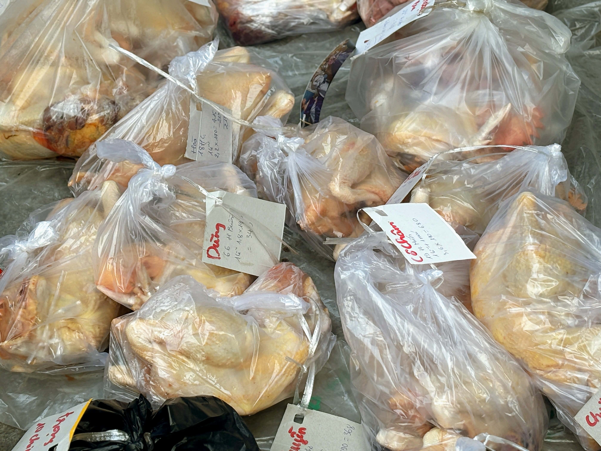 Khác với không khí gà luộc sẵn luôn nhộn nhịp ở Chợ Hàng Bè, tại Thanh Hà, các hàng gà sống mới là tâm điểm. Giá gà sống dao động khoảng 170.000 đồng/kg. Khách chọn xong, người bán làm sạch tại chỗ; những con gà đã mổ xếp hàng chờ giao kín một góc đường sạp.