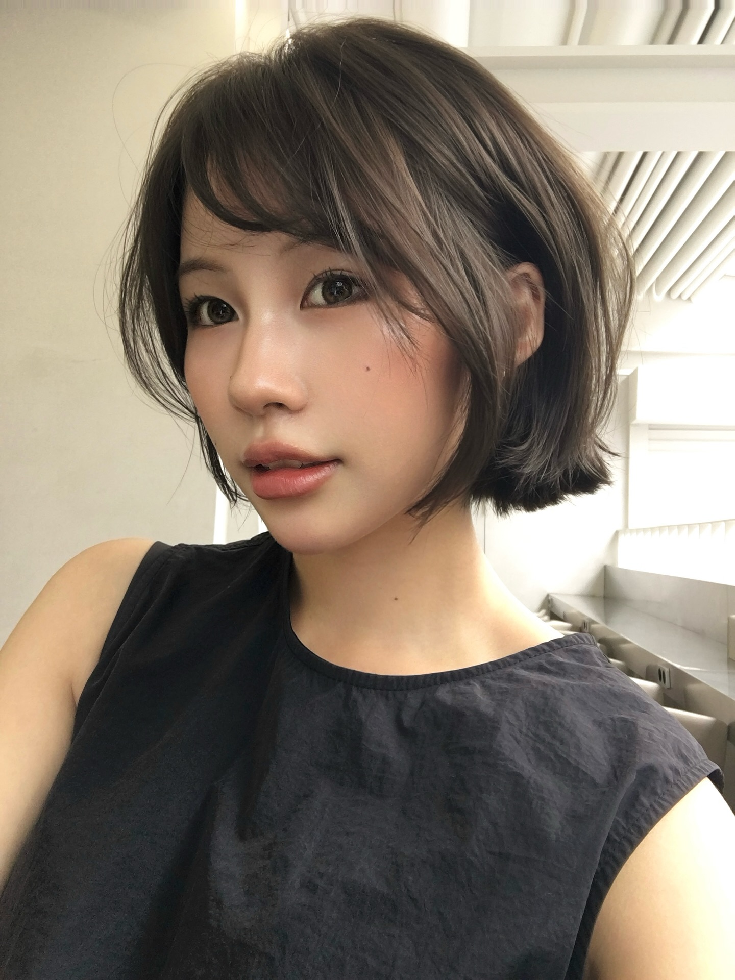 Nếu bạn muốn thay đổi mà không cần cắt quá nhiều, chỉ cần chuyển sang ngôi lệch cũng đủ tạo hiệu ứng khác biệt. Tóc ngắn ngôi lệch mang lại vẻ ngoài trưởng thành, thanh lịch và có chút quyến rũ rất riêng.