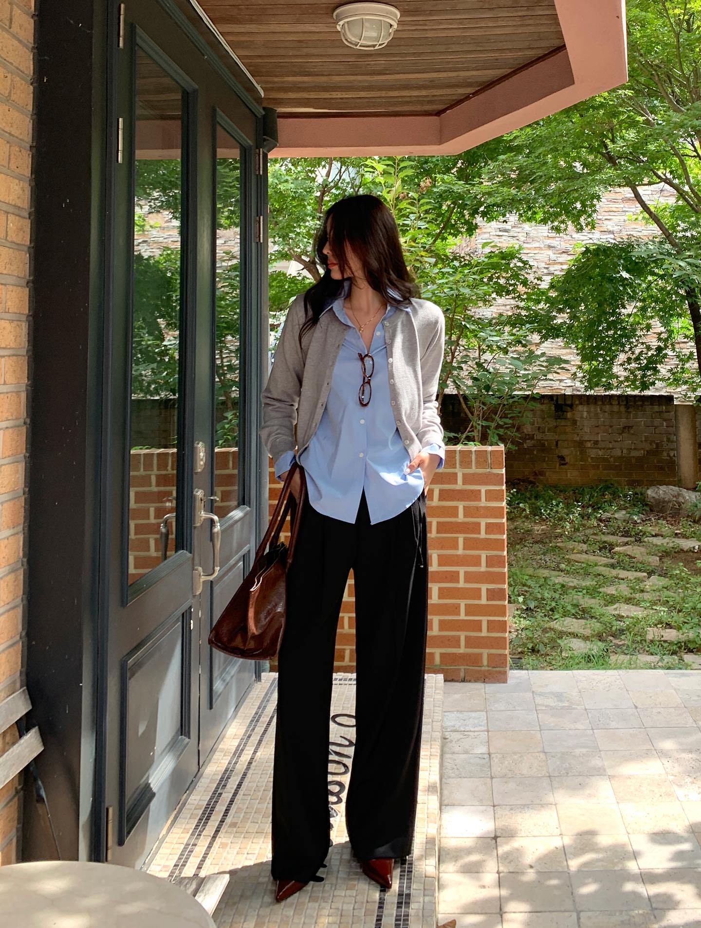 Với cardigan dáng dài, bạn có thể chọn những thiết kế mỏng, có độ rủ để tránh cảm giác nặng nề. Bảng màu trung tính như kem, nâu, xám nhạt hay pastel sẽ giúp set đồ trở nên thanh lịch và dễ ứng dụng. Ngoài ra, việc cài khuy cardigan như một chiếc áo chính, kết hợp cùng quần ống rộng và giày bệt hoặc sneaker cũng là công thức được nhiều tín đồ thời trang yêu thích. Phong cách này mang hơi hướng cổ điển, gợi nhớ đến thời trang Pháp nhưng vẫn rất phù hợp với nhịp sống hiện đại.