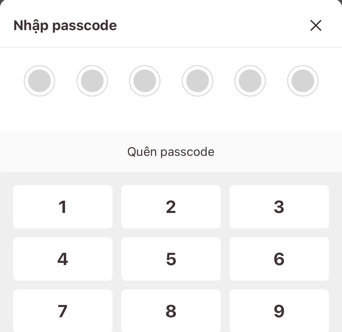Bước 3: Nhập passcode hoặc xác thực bằng khuôn mặt/vân tay.