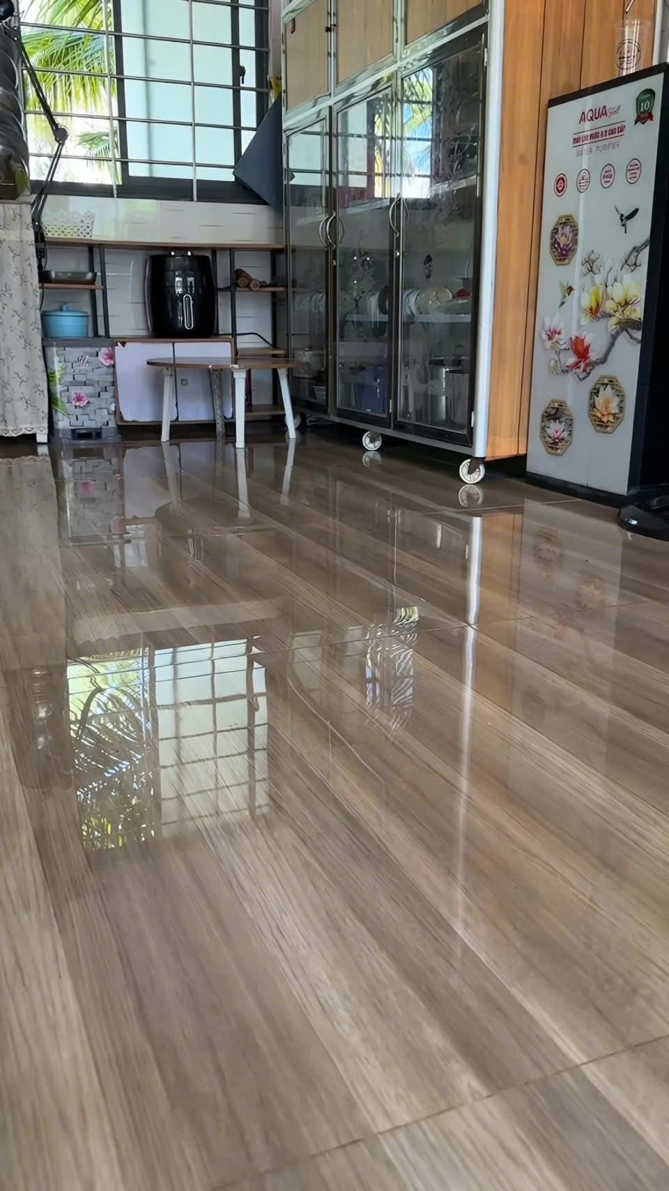 Khi lau, bọt nhẹ từ kem đánh răng giúp đánh bay các vết bẩn cứng đầu, chanh khử mùi và làm sáng sàn, còn nước lau sàn thì lo phần sạch và thơm. Kết quả là sàn nhà không chỉ sạch bong mà còn sáng hơn, mùi dễ chịu, cảm giác bước chân vào nhà cũng "đã" hơn hẳn.