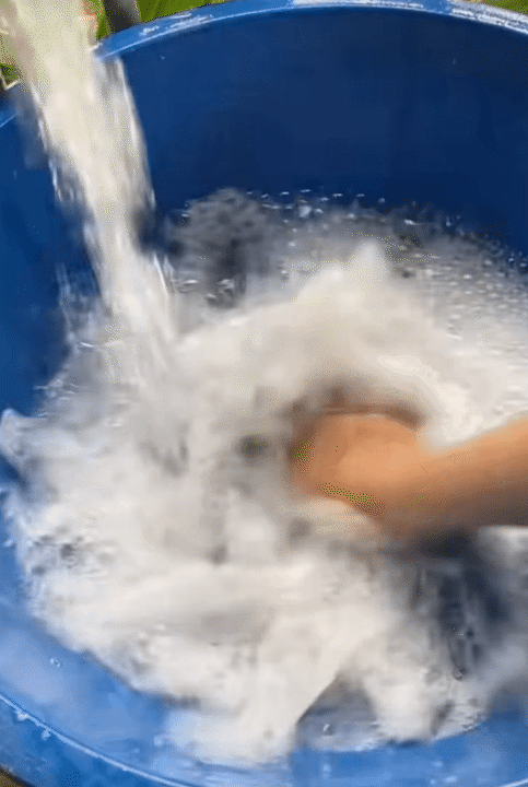 - Khuấy đều dung dịch cho tạo bọt và bắt đầu lau nhà.