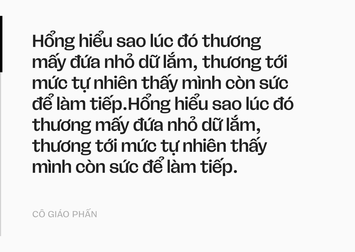“Hổng hiểu sao lúc đó thương mấy đứa nhỏ dữ lắm, thương tới mức tự nhiên thấy mình còn sức để làm tiếp.”