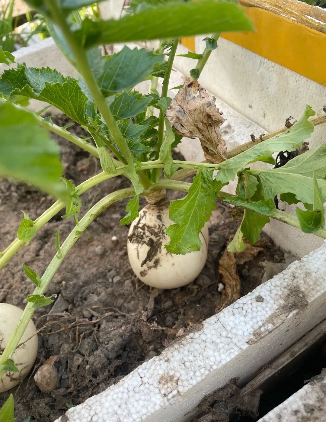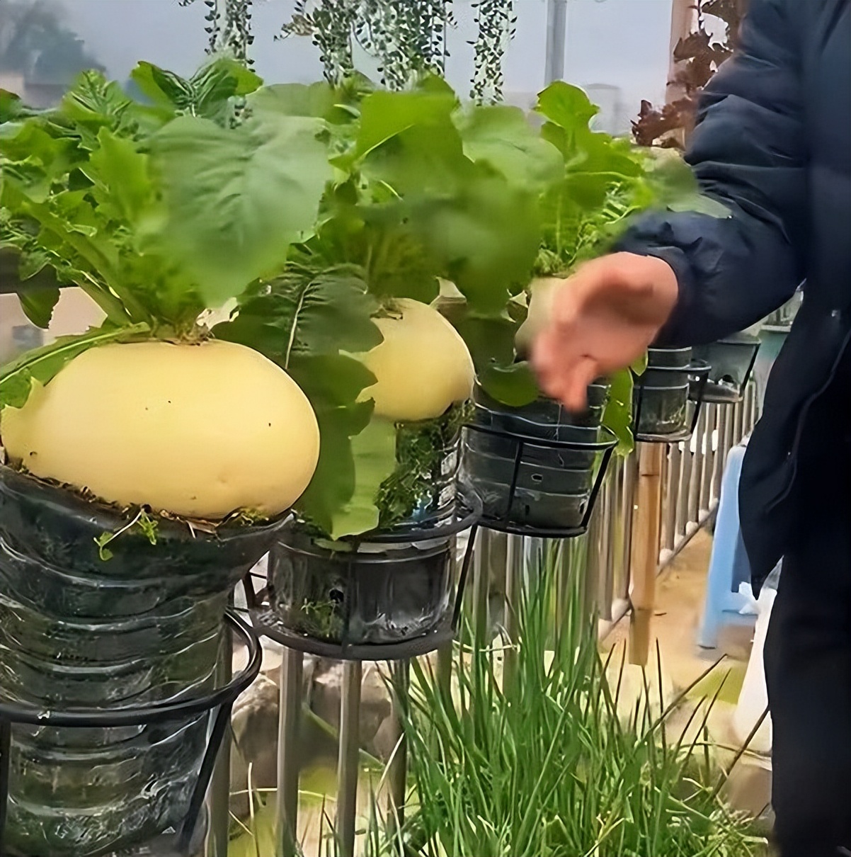 Thực tế, củ cải trắng có rất nhiều giống, mỗi vùng một tên gọi. Chỉ nhìn qua hình ảnh, rất khó xác định chính xác. Nhưng điều đó dường như không còn quan trọng. Điều quan trọng là cách ông cụ biến một ban công nhỏ thành nơi nuôi dưỡng sự sống.