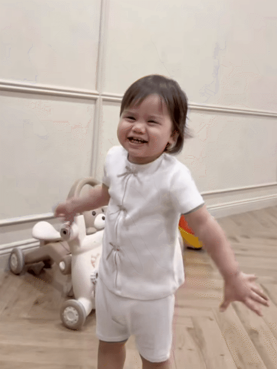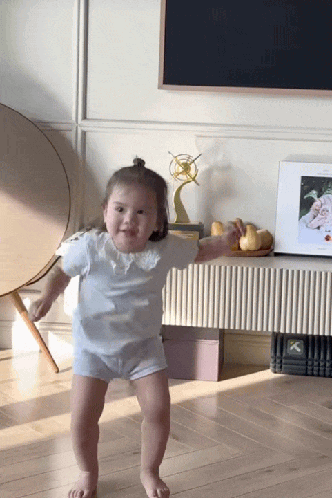 Đây cũng là nụ cười thương hiệu của bé Rosa, đi đến đâu cũng cười tươi rạng rỡ, toát lên năng lượng trong trẻo, đáng yêu vô cùng. Có lẽ chính sự hồn nhiên và vui tươi ấy đã khiến Rosa trở thành tâm điểm mỗi lần xuất hiện, bất kể cô bé đang ở sự kiện nào hay chỉ đơn giản là đi dạo cùng ba.