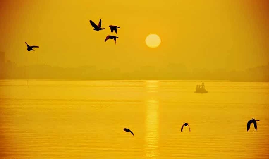 Hàng nghìn con chim sâm cầm từ đâu bay đến, bơi lội khắp mặt hồ tạo thành cảnh “sâm cầm rợp bóng”.