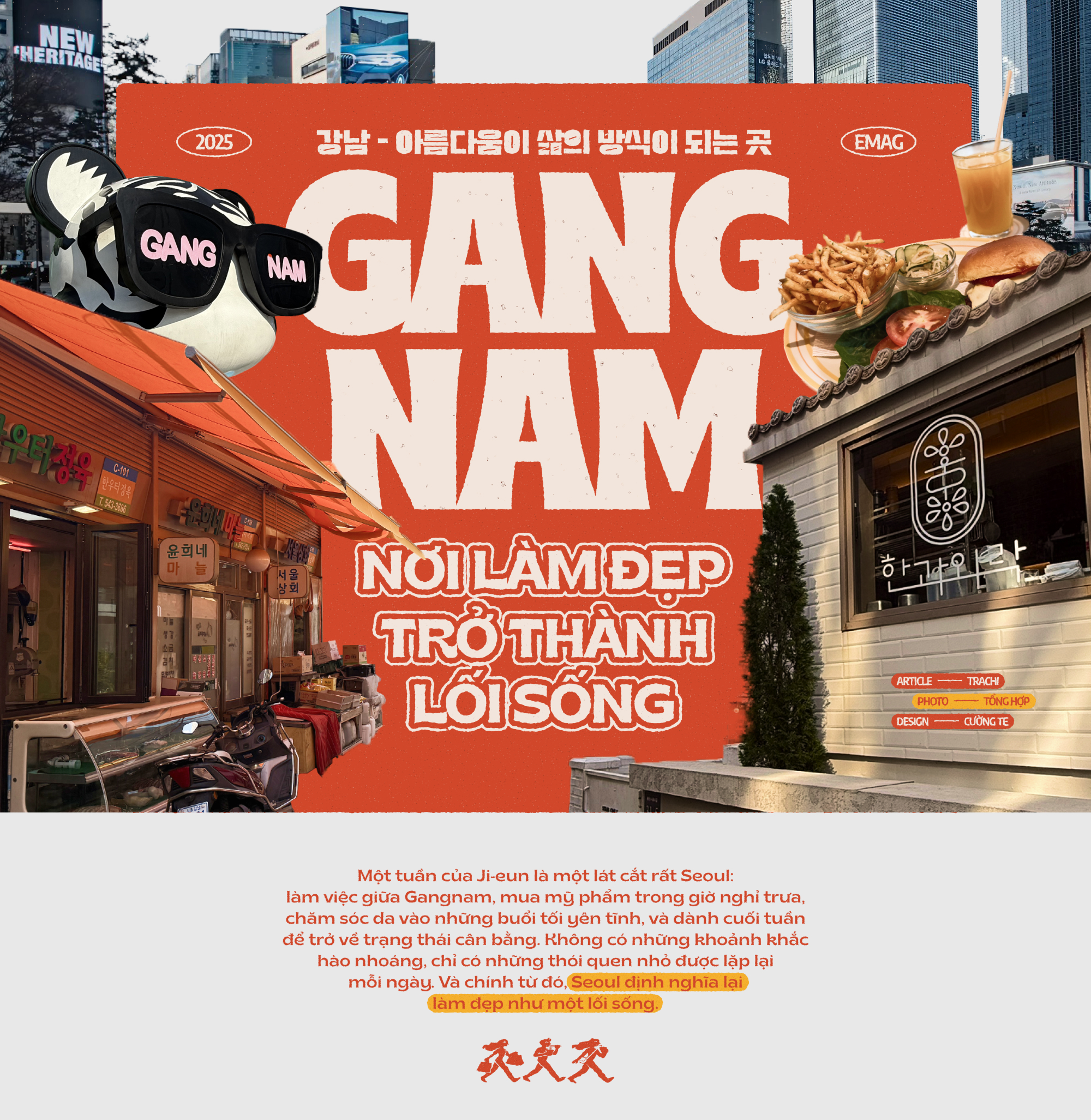 Một tuần của Ji-eun không có những khoảnh khắc ngoạn mục. Nhưng nếu theo dõi từng lịch trình nhỏ của cô - từ giờ nghỉ trưa vội vã ở Samseong, buổi tối dịu lại tại Nonhyeon, đến những chiều cuối tuần sâu lắng ở Apgujeong - người ta sẽ hiểu vì sao Seoul được xem là kinh đô của một lối sống với việc làm đẹp không thể tách rời.