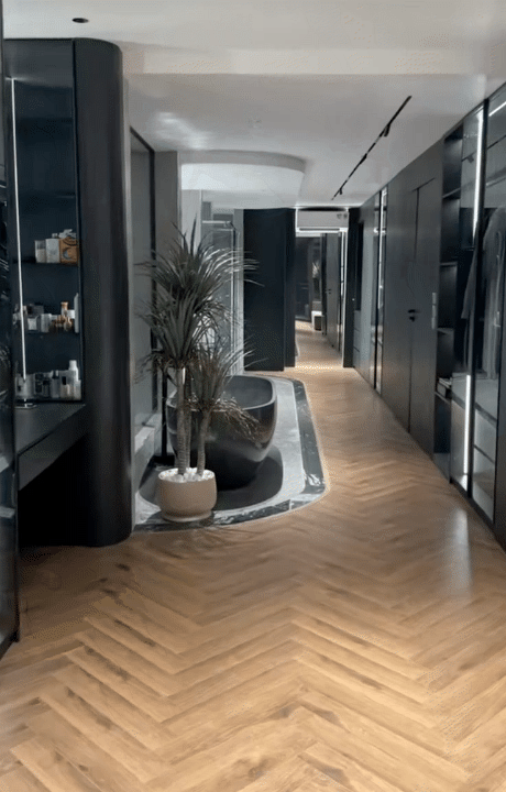 Bên cạnh phòng khách sang trọng, căn nhà còn gây ấn tượng mạnh với phòng ngủ master rộng tới 70m2 - một diện tích hiếm thấy trong các căn nhà phố tại Hà Nội. Không gian này được vợ chồng chị Thảo dành nhiều tâm huyết để thiết kế theo phong cách hiện đại, tối giản nhưng vẫn đảm bảo sự tiện nghi và thư giãn tuyệt đối.