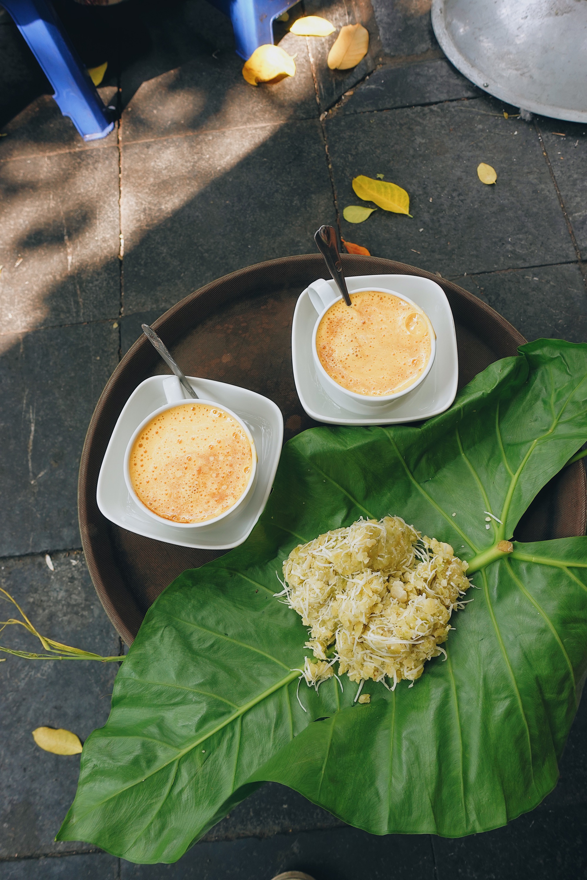 Ngồi nhâm nhi những hạt cốm dẻo thơm, thêm một tách cà phê trứng hay cốc trà chanh - quá tuyệt vời cho một ngày cuối tuần