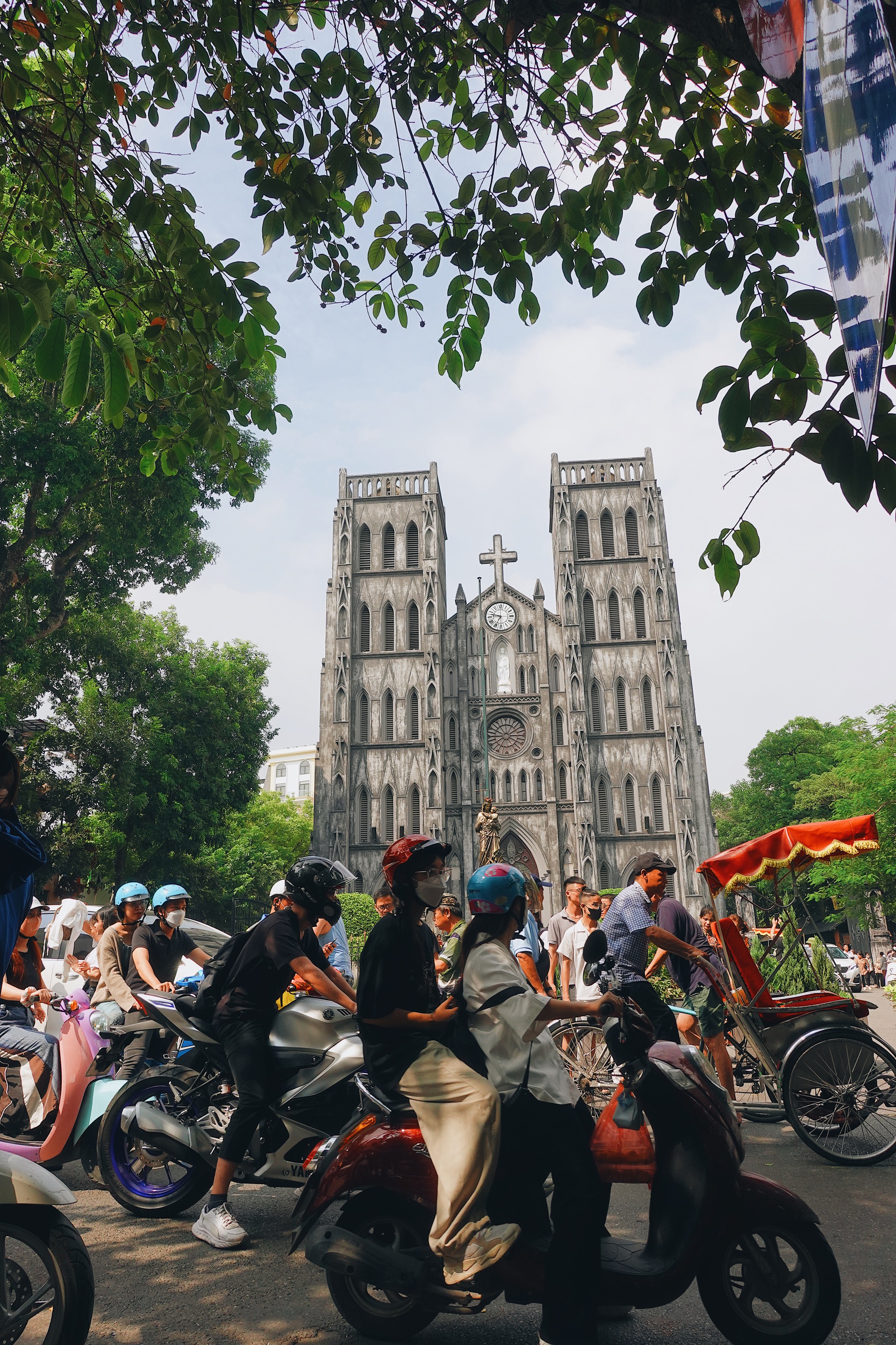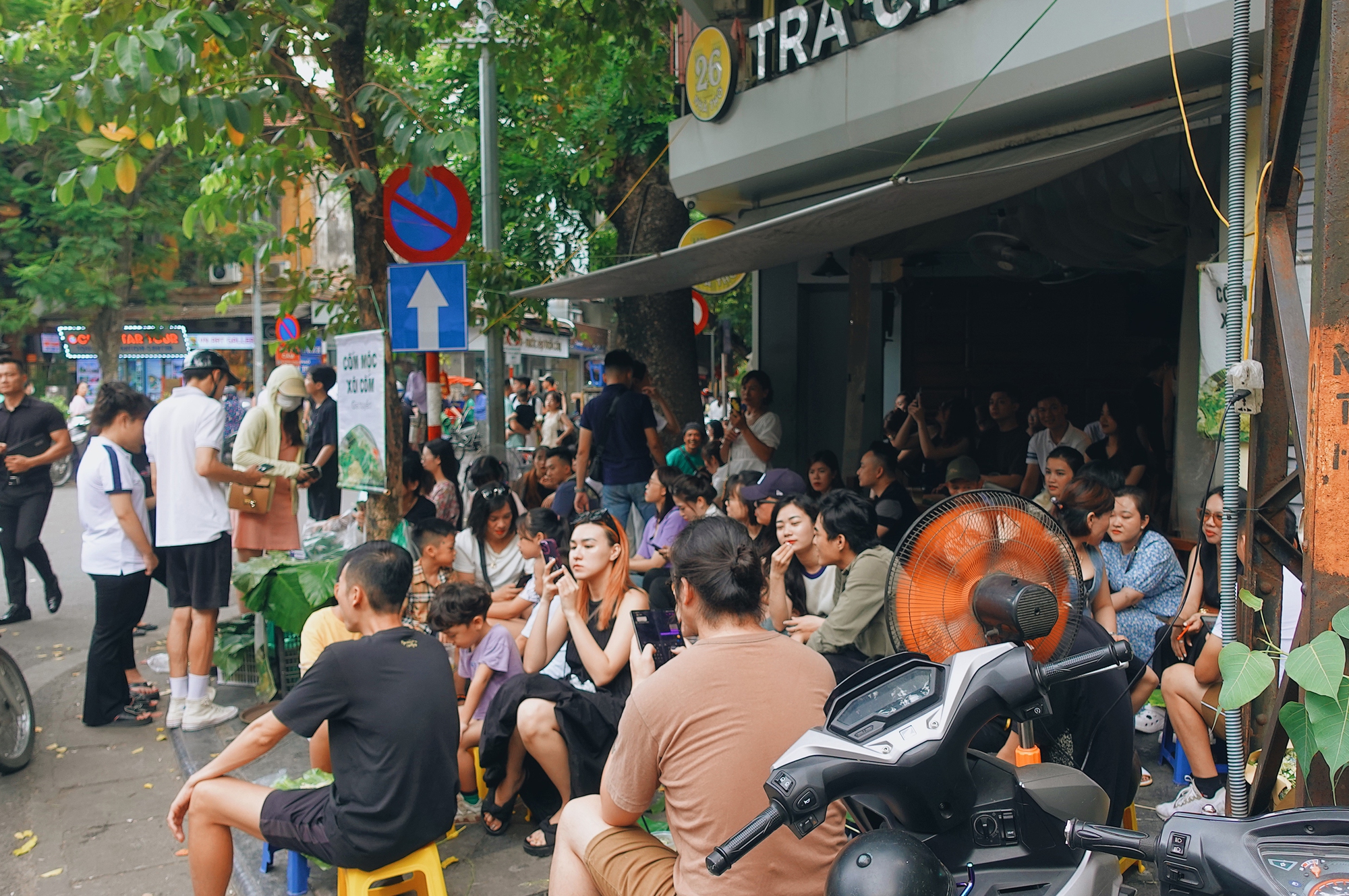 Rất nhiều người đổ về khu vực Nhà Thờ Lớn ngồi uống cà phê và ăn xôi cốm