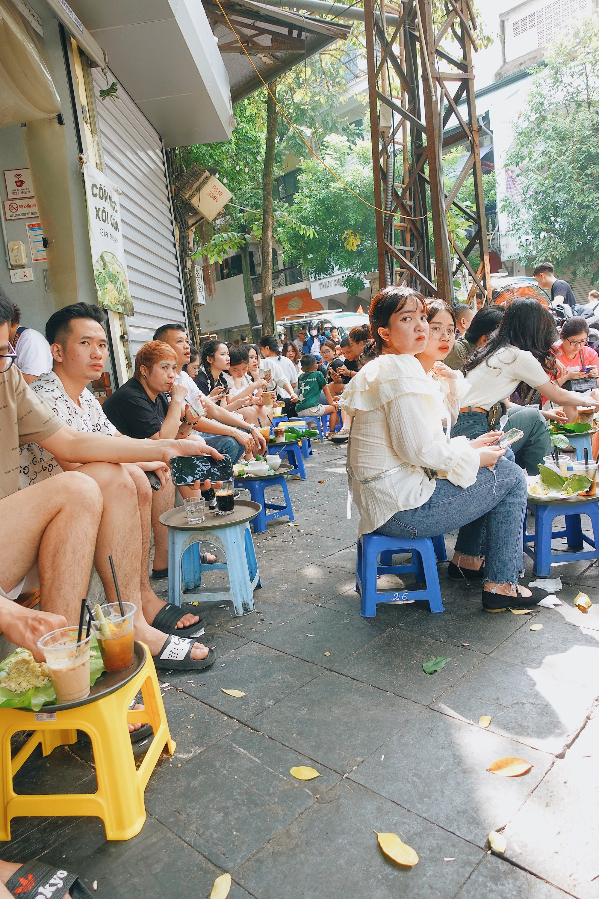 Nhiều người ghé ngay vào những quán cà phê quanh con phố Nhà Thờ để ngồi ăn xôi, gọi thêm một ly cà phê hay trà chanh, vừa nhâm nhi vừa ngắm Nhà Thờ và dòng người qua lại tấp nập.