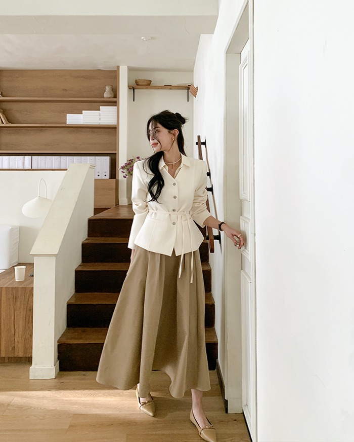 Một lợi thế khác của chân váy suông là khả năng "hack" dáng theo cách riêng. Với thiết kế cạp cao, chiếc váy giúp đôi chân trông dài hơn, đặc biệt khi đi cùng giày cao gót hoặc giày mũi nhọn. Ngay cả khi diện cùng giày bệt, tổng thể vẫn giữ được sự gọn gàng nếu bạn sơ vin áo chỉn chu.