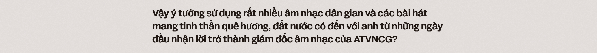 Âm nhạc dân gian đã theo tôi từ lúc còn ngồi trên ghế nhà trường. Ngày đi học, tôi rất thích trường phái ấn tượng và từng kết hợp với nhiều chất liệu của Việt Nam. Đây là ngôn ngữ sáng tạo của riêng tôi khi còn đi học. Ngay từ những khoảnh khắc đó, tôi đã đam mê nó rồi. Thời điểm còn chơi DJ, tôi cũng thích sử dụng những bài mang hơi hướng world music một chút. Với những bài Việt Nam thì chắc chắn sẽ phải tự tay làm. Tôi luôn ấp ủ đưa chất liệu Việt Nam vào mọi phần trình diễn và lúc nào cũng thực hiện điều đó khi có thể.