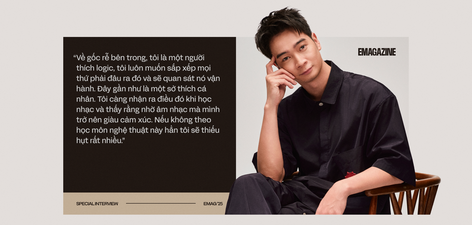 Về gốc rễ bên trong, tôi là một người thích logic, tôi luôn muốn sắp xếp mọi thứ phải đâu ra đó và sẽ quan sát nó vận hành. Đây gần như là một sở thích cá nhân. Tôi càng nhận ra điều đó khi học nhạc và thấy rằng nhờ âm nhạc mà mình trở nên giàu cảm xúc. Nếu không theo học môn nghệ thuật này hẳn tôi sẽ thiếu hụt rất nhiều.