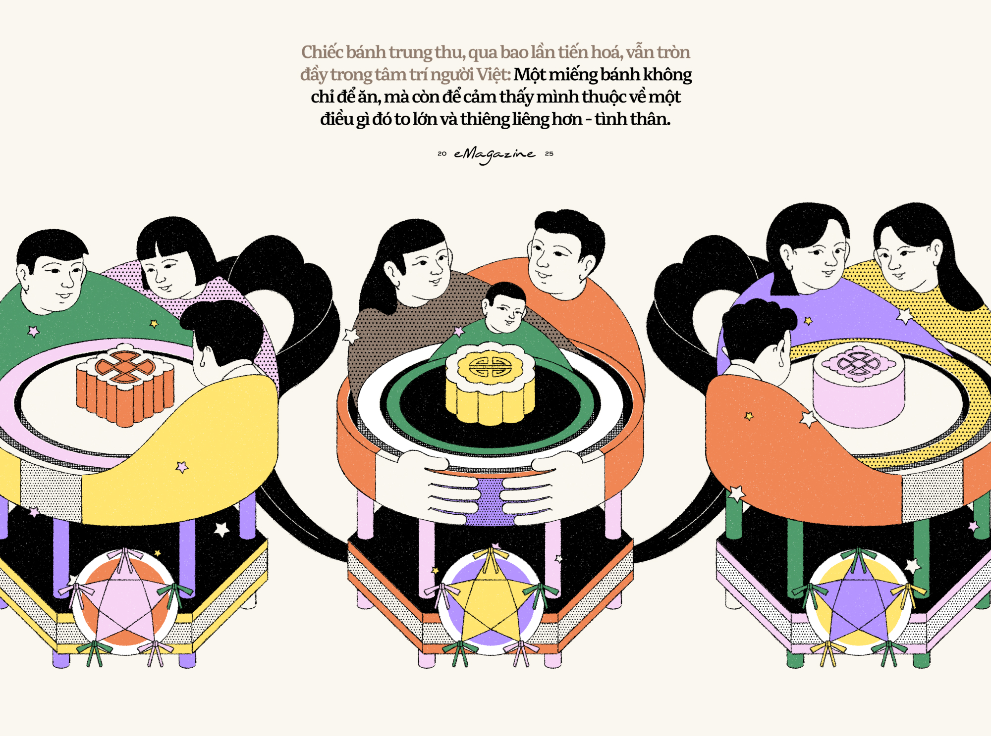 Có lẽ vì vậy mà bánh trung thu - dù vẫn ngọt, vẫn béo, vẫn đầy calories và đi ngược lại với mọi chế độ ăn kiêng - nhưng vẫn chưa bao giờ mất chỗ đứng. Ta không ăn nó để thoả mãn vị giác, mà là để tạo ra những ký ức, những niềm vui của sự sẻ chia, đoàn viên và một phần không thể thiếu của đêm rằm trăng sáng. Và chính điều đó làm cho chiếc bánh trung thu, qua bao lần tiến hoá, vẫn tròn đầy trong tâm trí người Việt: Một miếng bánh không chỉ để ăn, mà còn để cảm thấy mình thuộc về một điều gì đó to lớn và thiêng liêng hơn - tình thân.