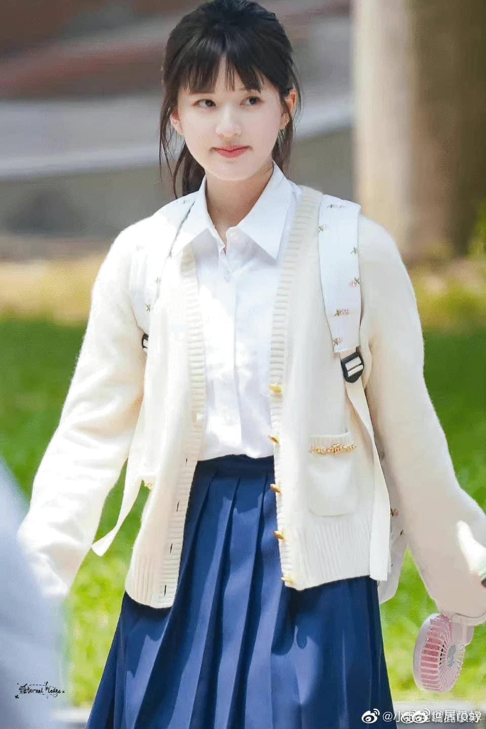 Hoá thân từ cô nữ sinh cấp 3 đến sinh viên đại học, Triệu Lộ Tư ghi điểm với loạt outfit “hack tuổi” cực đỉnh. Một trong những item rất được nữ diễn viên ưa chuộng trong phim chính là áo khoác len cardigan được phối cùng váy liền, quần jeans, áo sơ mi trắng, áo phông… để tăng thêm vẻ ngọt ngào, đáng yêu