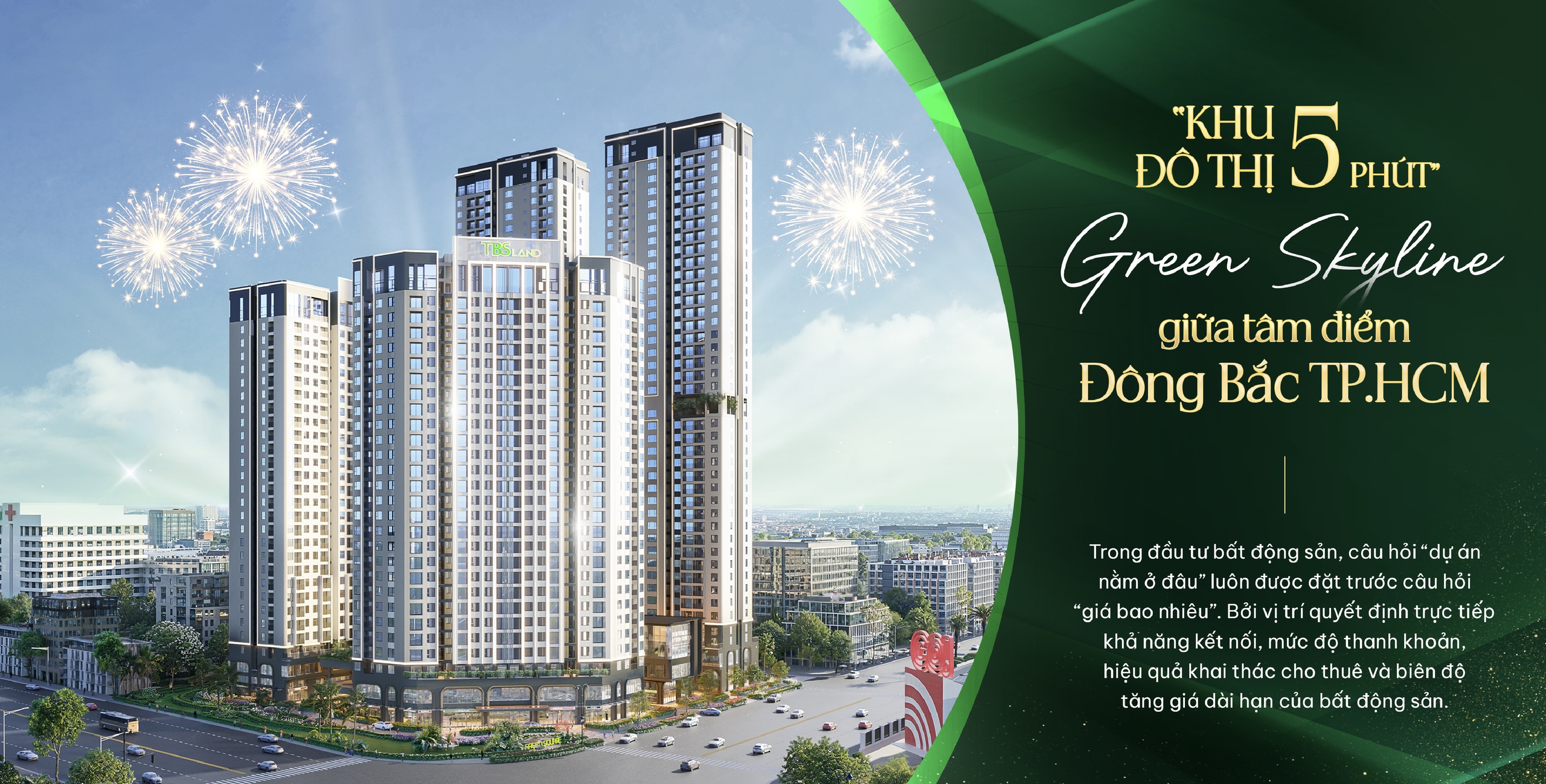 Green Skyline được chủ đầu tư TBS Land mở bán chính thức vào Quý I/2026. Hơn 500 khách hàng lựa chọn các sản phẩm của Green Skyline trong ngày mở bán đầu tiên, đánh dấu cột mốc quan trọng của một dự án dám chọn chiến lược "hoàn thiện trước, bán sau". Kết quả này cho thấy sức hấp dẫn của "chất sống di sản" được kiến tạo từ vị trí đắc địa, sản phẩm hiện hữu, pháp lý minh bạch cùng nền tảng phát triển vững chắc suốt 37 năm của TBS Group. Green Skyline toạ lạc giữa tâm điểm khu Đông Bắc TP.HCM, một không gian sống không cần chờ đợi tương lai để chứng minh giá trị, bởi giá trị ấy đã hiện diện ngay từ hôm nay.