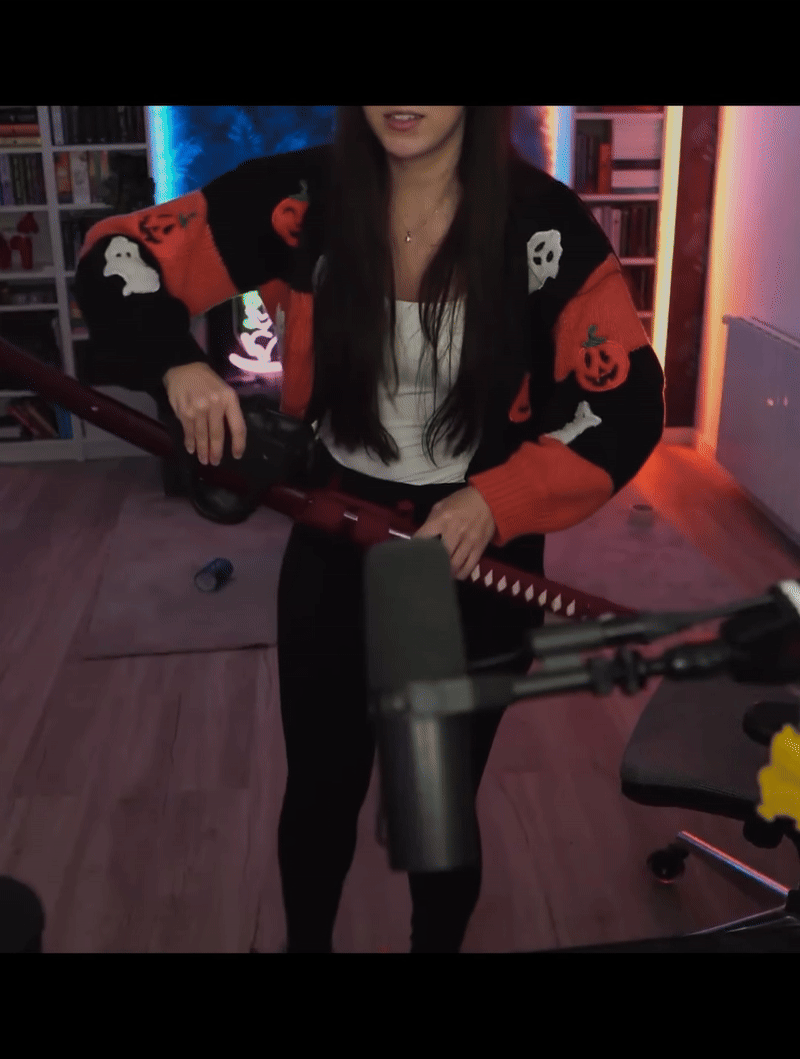 Trong số đó có một thanh katana đặt trên giá. Khi cô rút kiếm ra khỏi vỏ để khoe với khán giả, lưỡi kiếm bất ngờ trượt khỏi tay và rơi xuống. Theo phản xạ tự nhiên, nữ streamer lập tức đưa tay ra chộp lấy, vô tình nắm trúng phần lưỡi sắc bén.