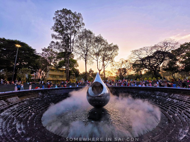 Đặc biệt trong dịp Tết này, không gian công viên càng trở nên lung linh huyền ảo hơn bao giờ hết nhờ hệ thống nhạc nước hoành tráng kết hợp cùng rừng ánh sáng nghệ thuật. Khi màn đêm buông xuống, 360 ngọn nến nước bao quanh 9 bậc cấp của tượng đài đồng loạt thắp sáng, hòa quyện cùng những cột nước phun cao theo điệu nhạc tạo nên một cảnh tượng mãn nhãn. Sự đầu tư bài bản đã biến khu đất rộng hơn 4 hecta từng rơi vào quên lãng trở thành một không gian công cộng khang trang, sạch đẹp và vô cùng văn minh.