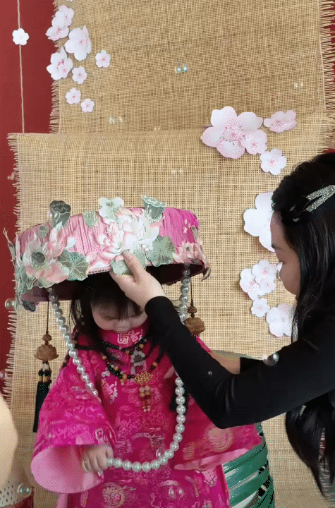 Không chỉ riêng bộ Phấn Lĩnh, mà hai hot kid đình đám này cũng đụng hàng bộ Y Long. Sau khi ai nữ Đỗ Mỹ Linh diện bộ Y Long trong Tết 2024, ngay lập tức bộ cánh tạo nên cơn sốt khắp hội mẹ bỉm sữa.