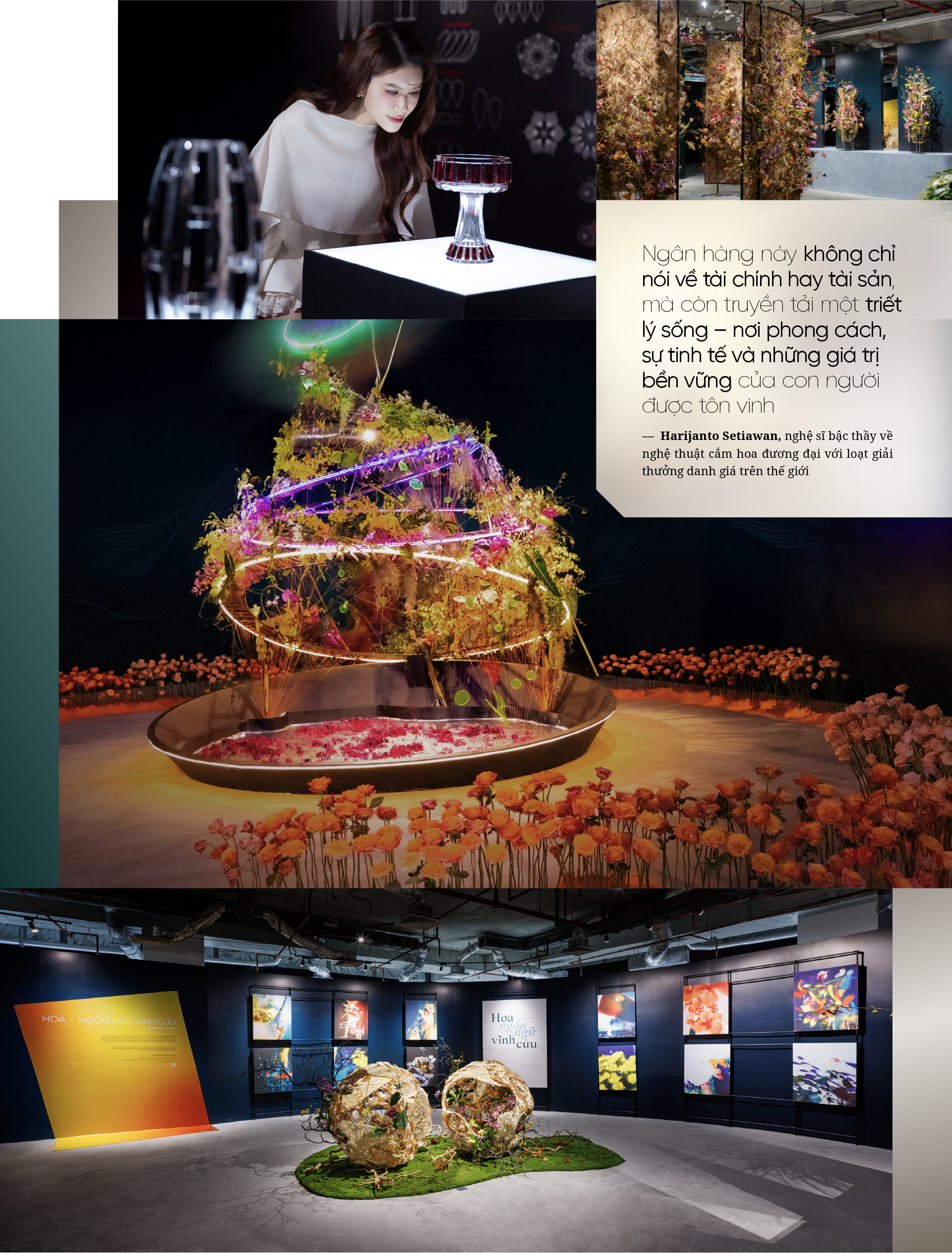 Khi được liên hệ để chia sẻ về những ý tưởng VPBank muốn làm với triển lãm, nhà thiết kế hoa Harijanto Setiawan đã lập tức cảm thấy đồng điệu. "Ngân hàng này không chỉ nói về tài chính hay tài sản, mà còn truyền tải một triết lý sống – nơi phong cách, sự tinh tế và những giá trị bền vững của con người được tôn vinh. Tôi nghĩ, đó cũng chính là điều tôi luôn kiếm tìm trong nghệ thuật".