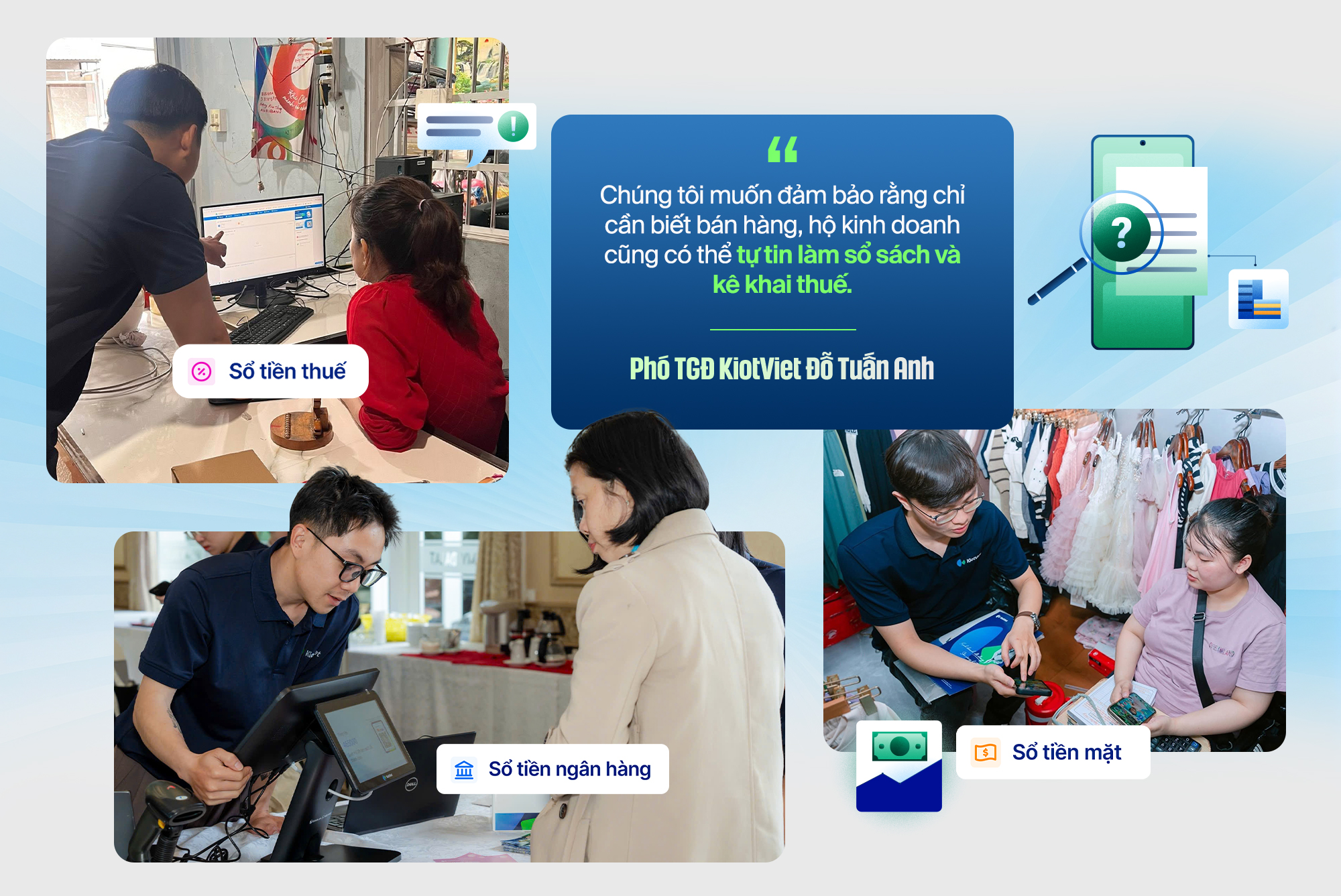 Chúng tôi may mắn có hai lợi thế lớn. Một là dữ liệu sẵn có. Hiện đã có hơn 300.000 hộ kinh doanh sử dụng KiotViet. Mỗi ngày, hệ thống ghi nhận hàng triệu giao dịch. Đó chính là "nguyên liệu sống" để lập sổ sách và tờ khai thuế. Hai là năng lực công nghệ tích lũy trong 15 năm.
