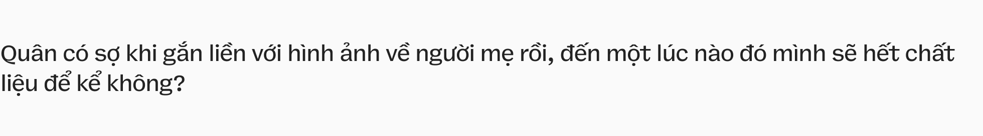 Mẹ tôi là gái Bắc một trăm phần trăm. Mà chị hiểu đấy: Gái Bắc lại còn buôn bán là mấy câu chửi trong đấy đã giảm đi ít nhiều sức mạnh rồi. Mẹ tôi chửi là… khủng khiếp luôn, có lần tôi phải khóc mà. Những lúc bố mẹ cáu giận là hay mắng lắm, dù biết là sau những lời cáu giận đấy là rất nhiều tình thương. Sau này khi kể lại trên video, tôi chọn cách tiếp cận có phần giải trí và hài hước thôi, chứ thực tế thì… căng ra phết. Nhưng tôi nghĩ quan trọng nhất là tôi hiểu tình yêu của mẹ, nên bao nhiêu sự dữ dằn ấy được tái hiện lại đều thành dễ thương.