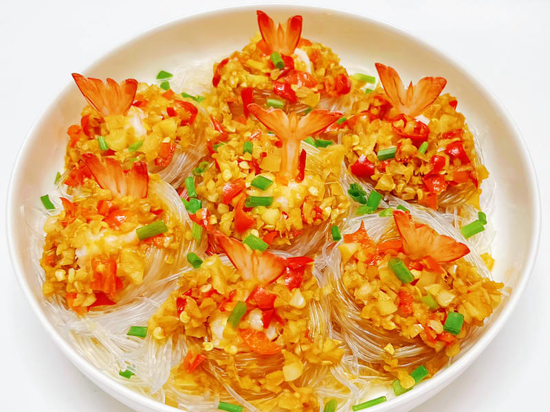 Trong bữa tối ngày 30 Tết một món ăn thơm lừng, rực rỡ sắc màu trong như những bông hoa nở rộ sẽ là thông điệp của tình yêu thương và ý nghĩa cầu mong may mắn trong năm tới. Những con tôm đứng thẳng và kiêu hãnh thực sự giống như những bông hoa đang nở rộ, mang theo những kỳ vọng tốt đẹp của chúng ta về "hoa nở và thịnh vượng" trong năm mới. Tôm giòn ngon mang vị ngọt tươi từ biển cả, miến mềm dai thấm gia vị sốt tỏi đậm đà cực đưa vị.