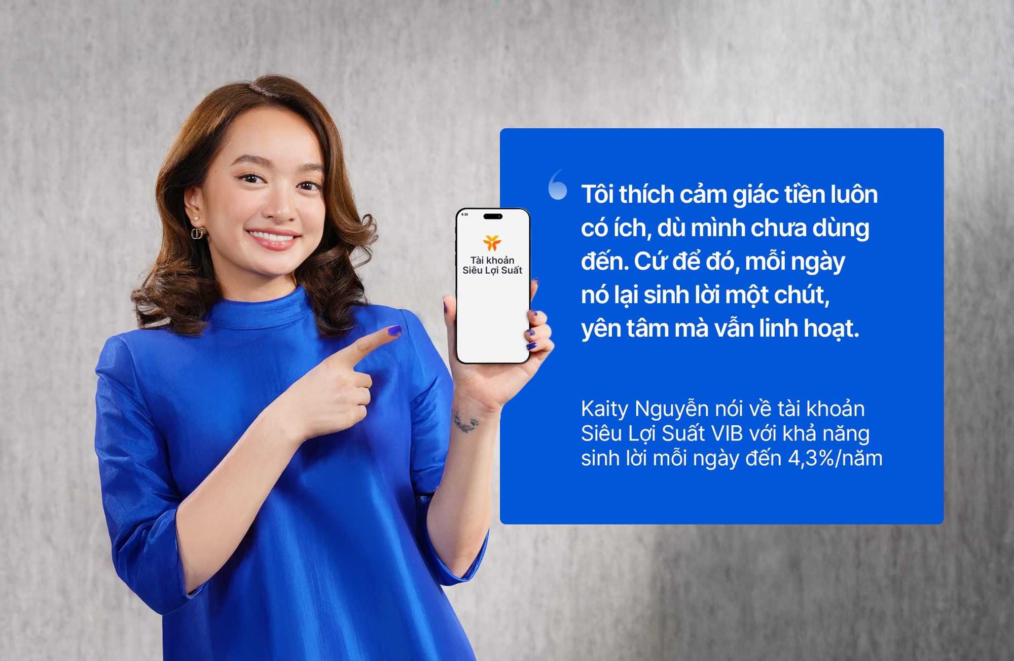 "Tôi thích cảm giác tiền luôn có ích, dù mình chưa dùng đến. Cứ để đó, mỗi ngày nó lại sinh lời một chút, yên tâm mà vẫn linh hoạt," cô nói về tài khoản Siêu Lợi Suất VIB với lợi suất lên đến 4,3%/năm. Kết hợp với thẻ thanh toán toàn cầu VIB Smart Card hoàn tiền đến 5% cho chi tiêu online, cô cảm thấy mỗi đồng tiền được sinh lời hai lần – một lần khi giữ, một lần khi chi.