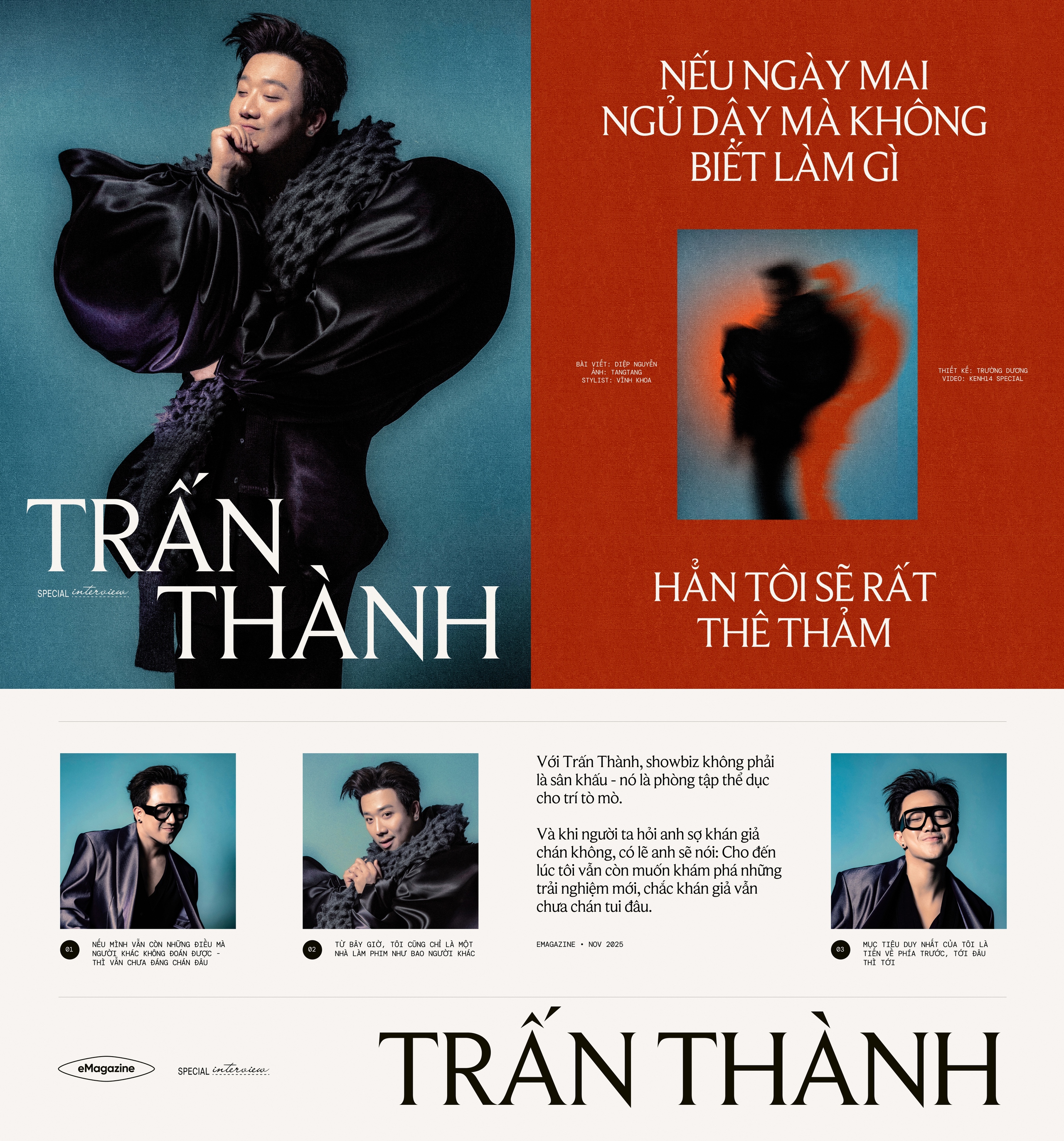 Với Trấn Thành, showbiz không phải là sân khấu - nó là phòng tập thể dục cho trí tò mò. Và khi người ta hỏi anh sợ khán giả chán không, có lẽ anh sẽ nói: Cho đến lúc tôi vẫn còn muốn khám phá những trải nghiệm mới, chắc khán giả vẫn chưa chán tui đâu.