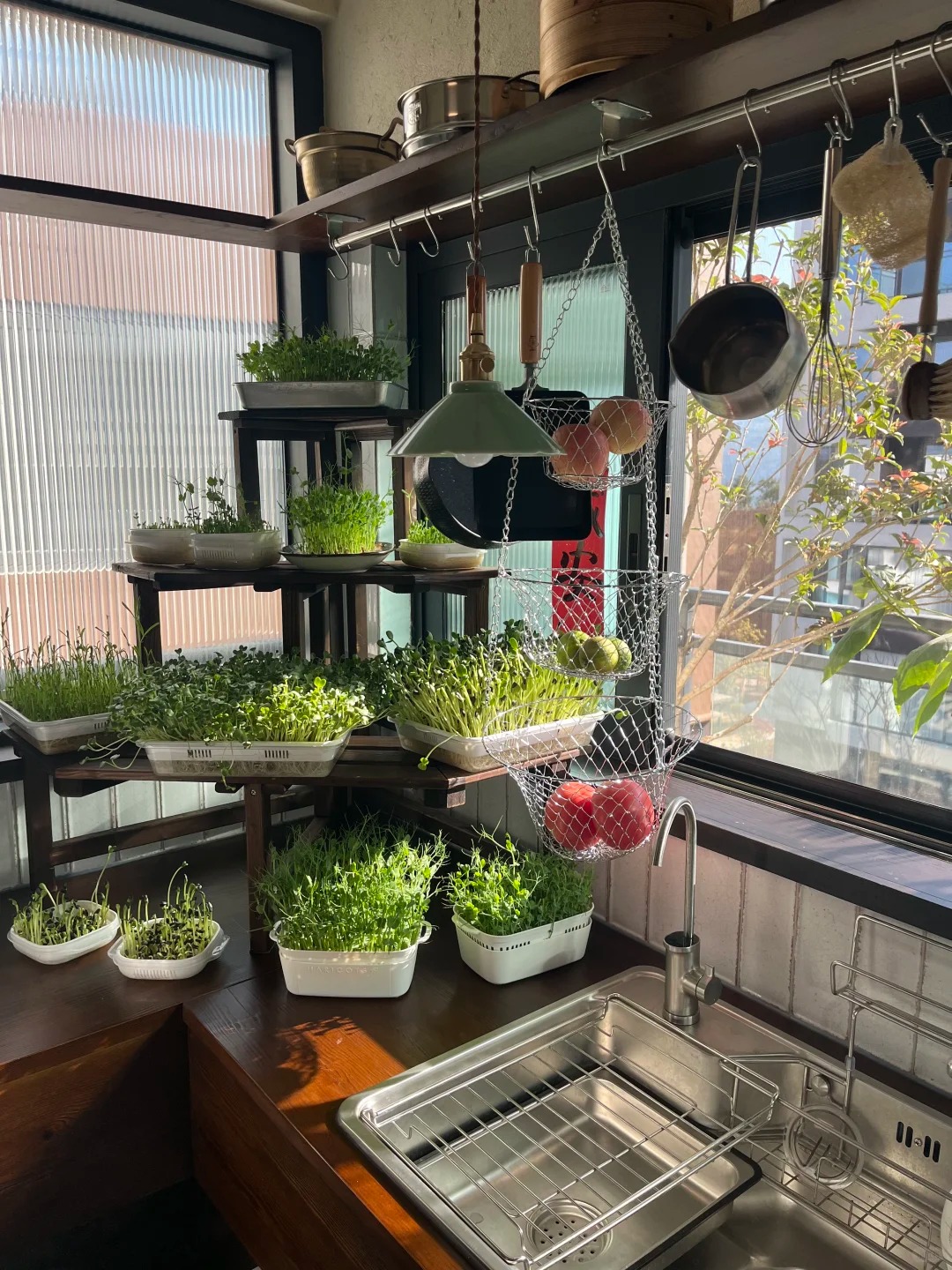 Có người nói vui, đó là "làn sóng rau trong gió" mỗi khi gió thổi qua khung cửa. Rau lớn lên rất nhanh. Sự sống ấy có tác dụng chữa lành nhiều hơn ta tưởng.
