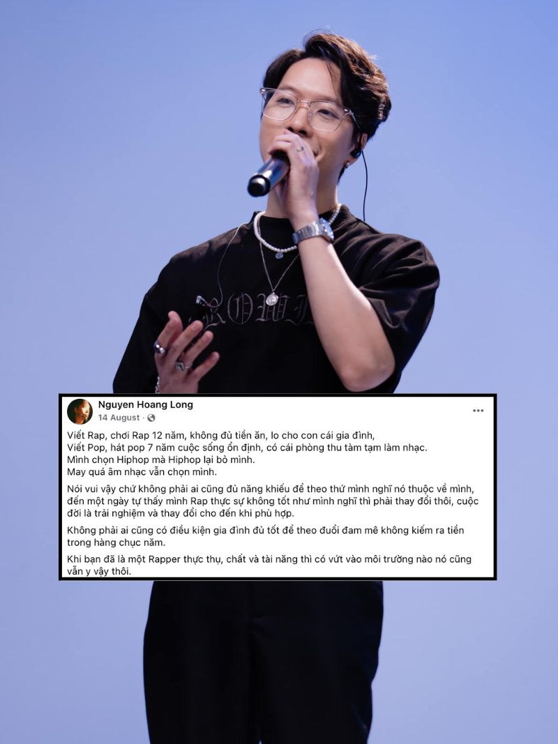 Giữa làn sóng đối lập ấy, Hoàng Long - rapper thuộc nhóm Da LAB cũng đã chia sẻ góc nhìn cá nhân về câu chuyện của người từng trong giới underground. Trong một bài đăng thu hút nhiều sự quan tâm, anh viết: "Viết rap, chơi rap 12 năm, không đủ tiền ăn, lo cho con cái, gia đình. Viết pop, hát pop 7 năm, cuộc sống ổn định, có cái phòng thu tàm tạm để làm nhạc. Mình chọn hiphop mà hiphop lại bỏ mình. May quá âm nhạc vẫn chọn mình". Đồng thời, nam rapper cho rằng không phải ai cũng có điều kiện để theo đuổi rap suốt hàng chục năm mà không kiếm ra tiền, và sự thay đổi không đồng nghĩa với phản bội. Khi đã là một rapper thực thụ, "chất và tài năng sẽ không biến mất, dù ở bất kỳ môi trường nào".