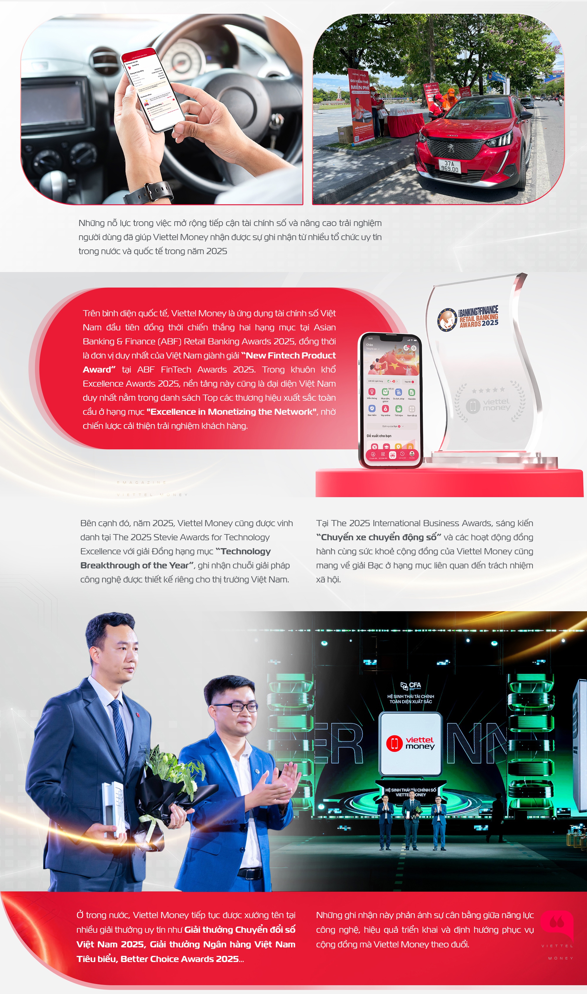 Năm 2025 cũng đánh dấu một giai đoạn bứt tốc của Viettel Money - ứng dụng tài chính số 30 triệu người dùng được phát triển bởi Tổng Công ty Dịch vụ Tài chính số Viettel. Viettel Money vừa mở rộng quy mô dịch vụ, vừa ghi nhận nhiều thành tựu trong việc thúc đẩy tài chính toàn diện và đồng hành cùng các chương trình chuyển đổi số quốc gia.
