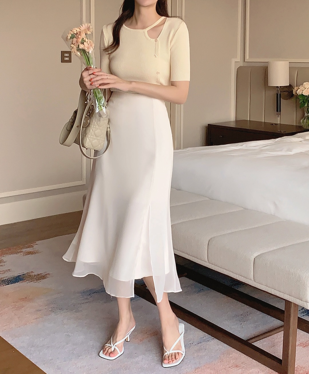 Chân váy hai lớp mang lại cảm giác "quiet luxury" – sang trọng một cách kín đáo, rất phù hợp với tinh thần thời trang đương đại. Khi phối cùng áo tay lửng, áo len mịn hoặc giày mule gót thấp, tổng thể trang phục vẫn giữ được sự chuyên nghiệp nhưng không hề khô cứng. Đây là lựa chọn lý tưởng cho những ai muốn làm mới hình ảnh công sở mà vẫn an toàn, tinh tế.