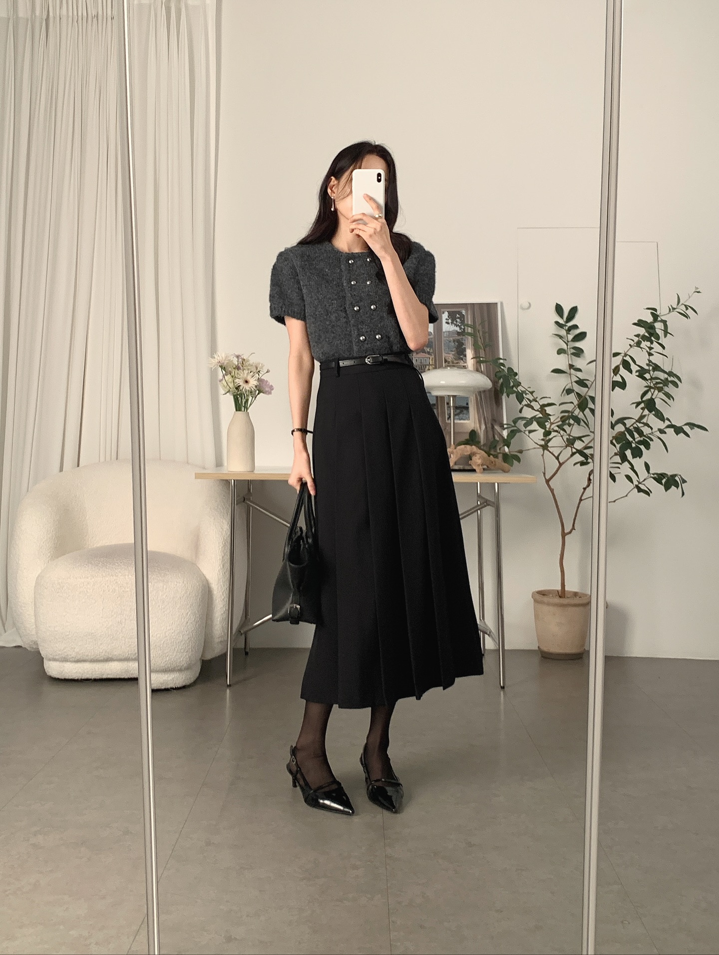 Điểm đáng chú ý là cách xử lý chất liệu: thay vì vải quá mỏng, các nhà mốt ưu tiên chất vải có độ nặng vừa phải để ly váy giữ được phom đẹp suốt ngày dài. Màu sắc cũng được tiết chế, tập trung vào đen, trắng, xám, xanh navy hoặc các tông pastel trầm, giúp chân váy xếp ly dễ dàng hòa vào môi trường công sở.