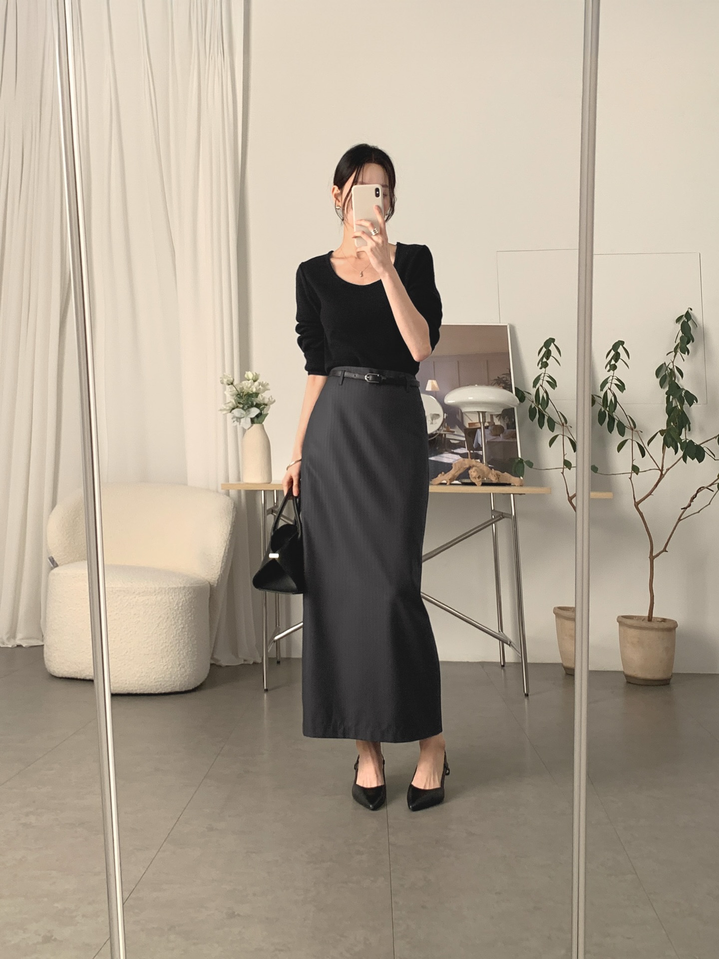 Chân váy suông tiếp tục là đại diện tiêu biểu cho phong cách tối giản hiện đại. Với đường cắt thẳng, phom dáng gọn gàng, kiểu chân váy này mang lại cảm giác chỉn chu, chuyên nghiệp và có phần "quyền lực" hơn so với các thiết kế xòe.